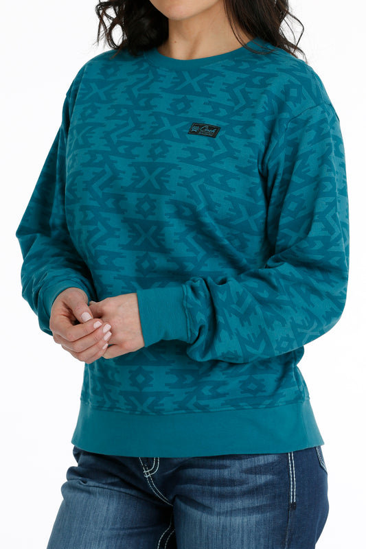 Cinch Women's Teal Southwest Print Pullover Crew Neck Sweater