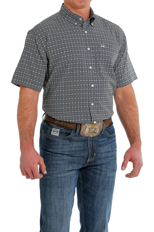 Cinch® Men's Arenaflex Navy Geoprint Short Sleeve Button Front Western Shirt