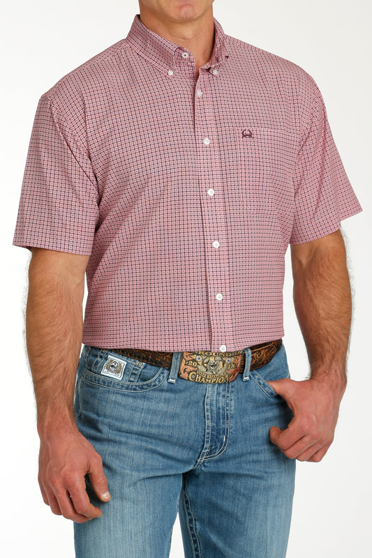 Cinch® Men's Pink Geoprint Lightweight Short Sleeve Button Front Shirt