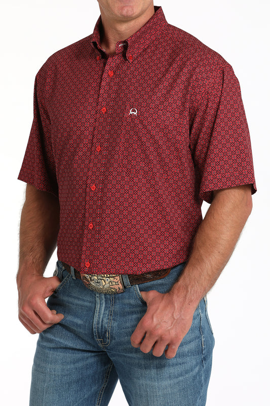Cinch® Men's Red Geo Print Short Sleeve Button Front Western Shirt