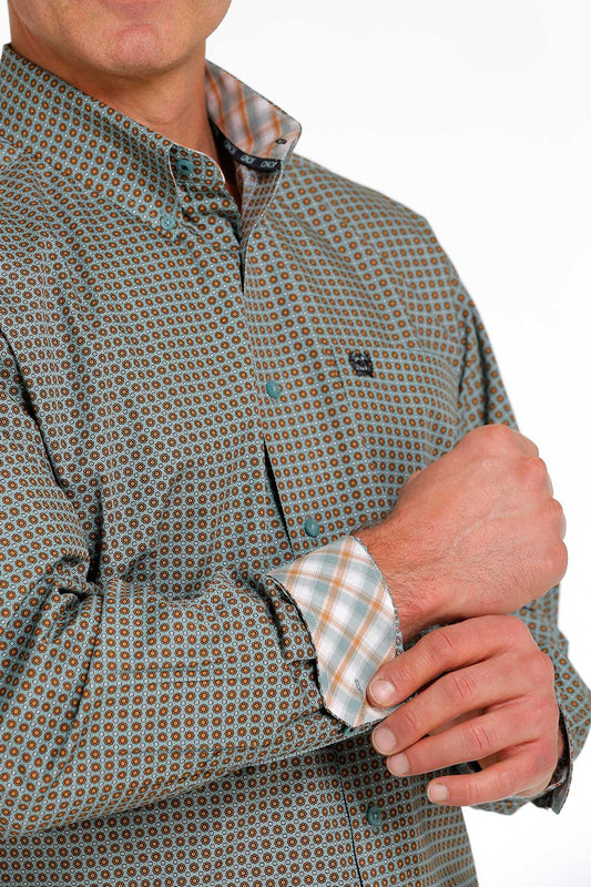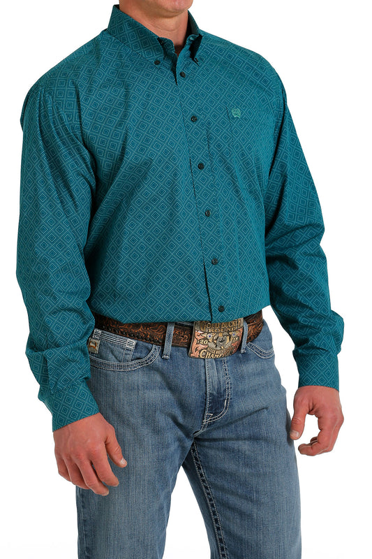 Cinch® Men's Teal Green Geoprint Long Sleeve Button Front Western Shirt