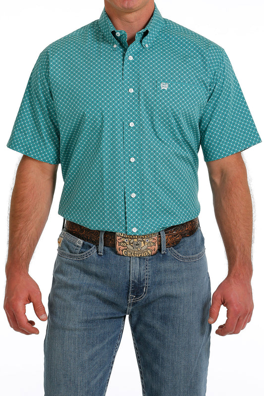 Cinch® Men's Turquoise Geo Print Short Sleeve Button Front Western Shirt