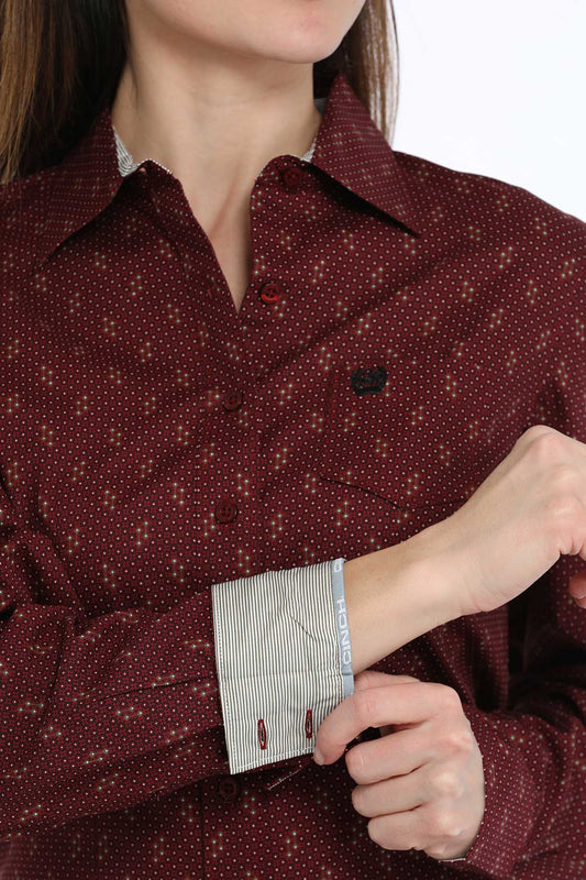 Cinch® Women's Burgundy Geo Print Long Sleeve Button Front Western Shirt