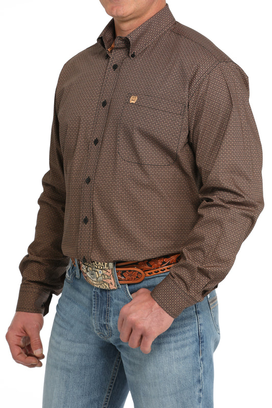 Cinch® Men’s Brown Geo Print Long Sleeve Button Front Western Shirt