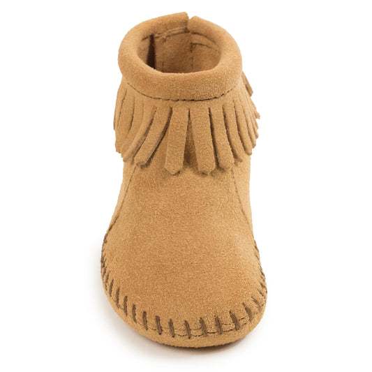 Minnetonka® Infant Genuine Leather Back Flap Bootie Moccasins