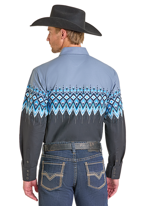 Panhandle Slim® Men's Blue Aztec Border Print Long Sleeve Snap Front Western Shirt