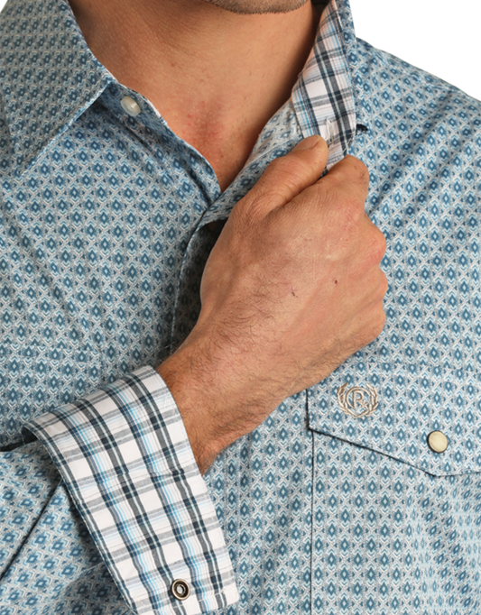 Panhandle Slim® Men's Blue Geo Print Long Sleeve Snap Front Western Shirt