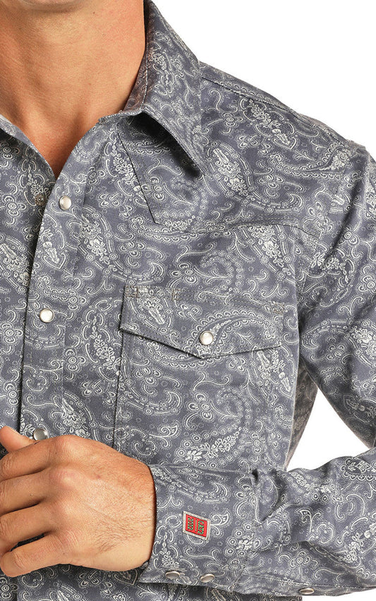 Panhandle Slim® Men's Flame Resistant Paisley Long Sleeve Snap Front Western Shirt