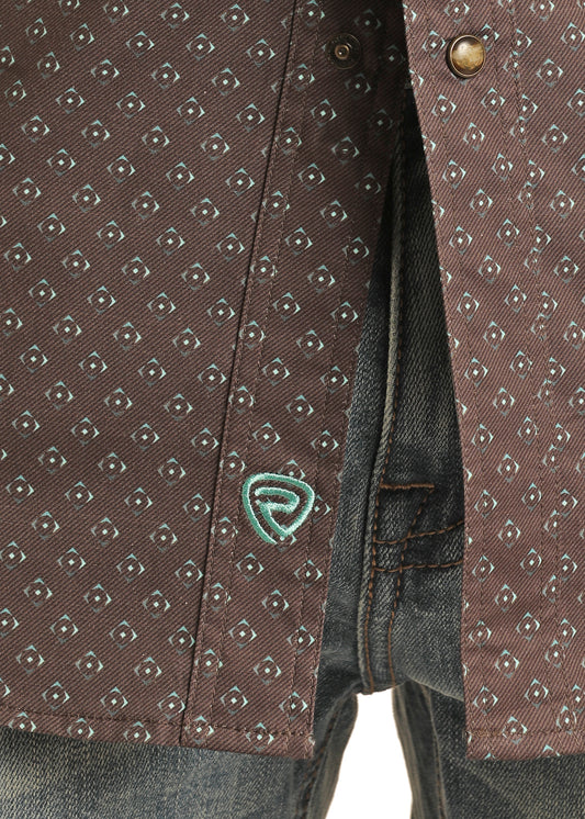 Panhandle Slim® Men's Brown Medallion Print Long Sleeve Snap Front Western Shirt