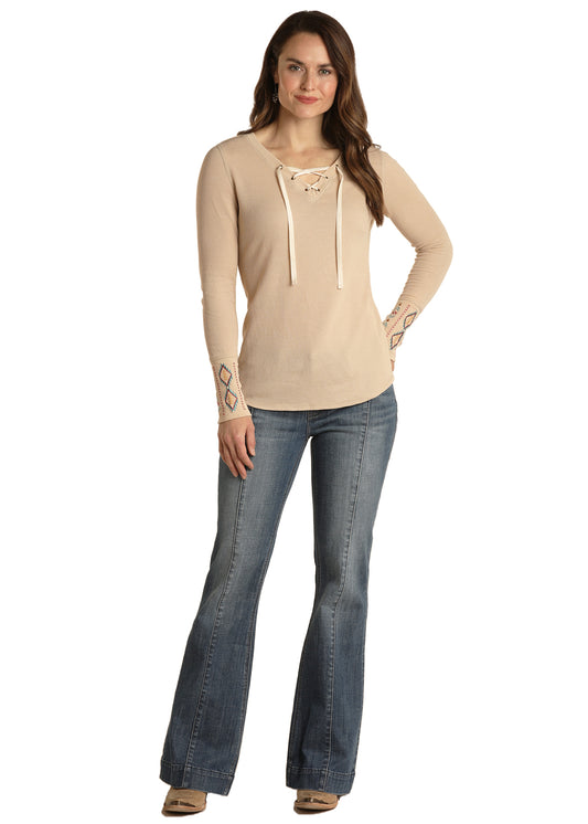 Panhandle Slim® Women's Laced Neck Long Sleeve Thermal Top