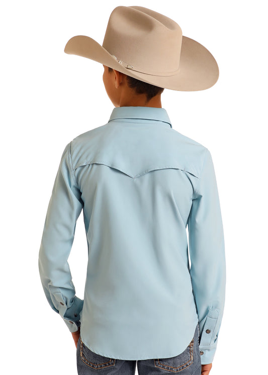 Panhandle Slim® Boys Rock N Roll Aqua Long Sleeve Snap Front Western Shirt