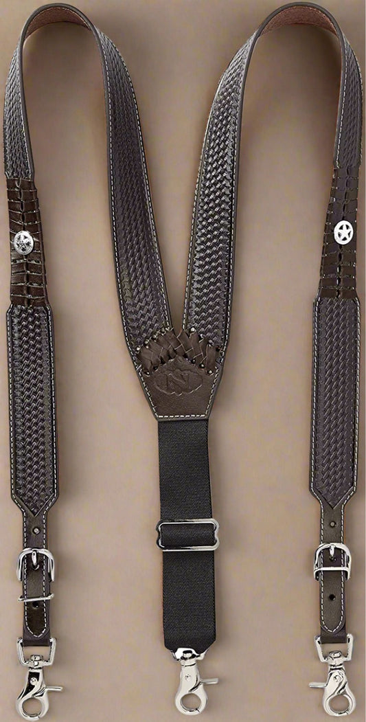 High quality full-grain leather suspenders by Nocona Belt Company.