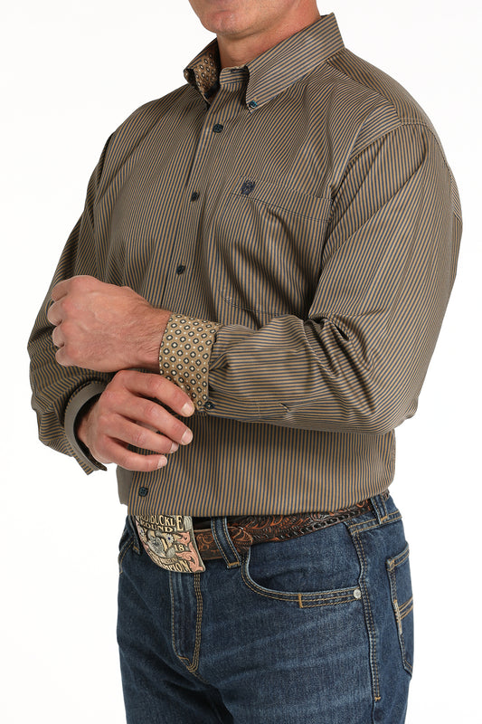 Cinch® Men's Striped Brown Long Sleeve Button Front Western Shirt