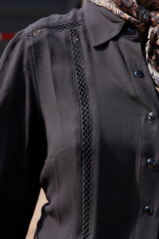Cruel Girl® Women's Woven Crochet Piecing Long Sleeve Snap Front Western Blouse