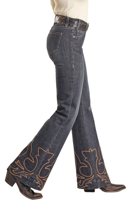 Panhandle Slim® Women's Rock & Roll Dark Wash Embroidered Hem Denim Jeans