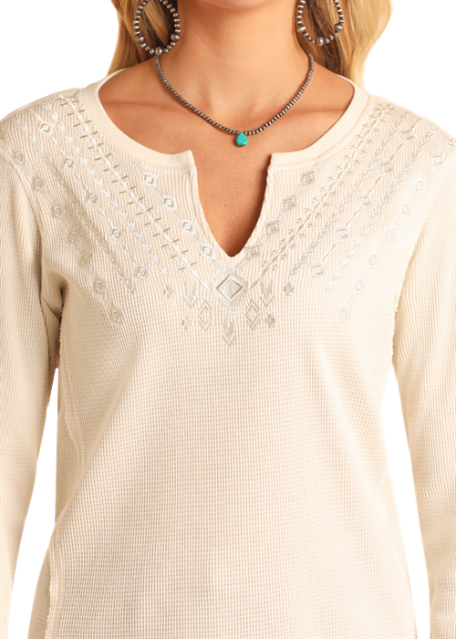 Roper® Women's Brown Aztec Print Long Sleeve Jersey Top