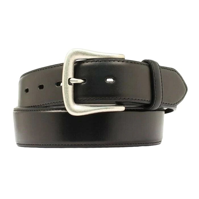 This Nocona® men's western belt features a smooth black leather design with a stylish, removable silver tone buckle. The 1 1/2” wide belt is completed with a matching leather keeper for a timeless look. Perfect for any western outfit.