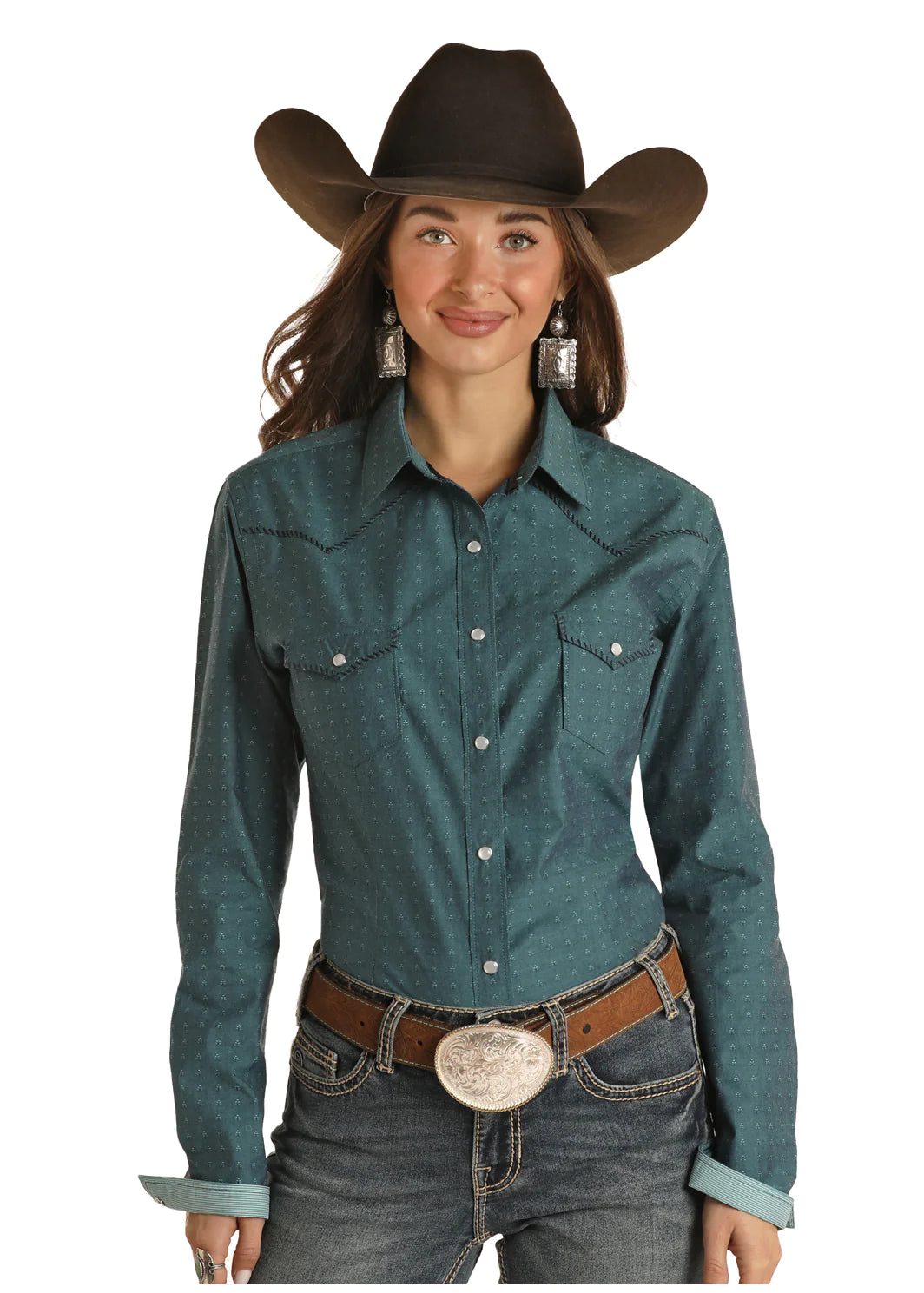 Panhandle Slim® Women's Turquoise Print Long Sleeve Snap Front Western Shirt